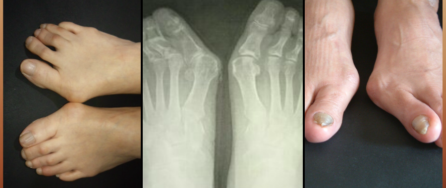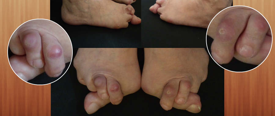 外反母趾、リウマチ、膠原病、など靴が足に合わない事で足の変形だけでなく、