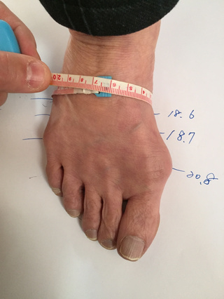 1:足の特徴を確認   ※ このような数値の違いに市販の靴が全く合わない理由が・・・ 2:数値を確認。  ※ 2cm以上の違いが市販の靴とは真逆で原因が・・・ 3:数値18.6cm・・・足はおひとりお一人違うことが・・・。   ※ 痛み、悩み、外反母趾になる理由は靴が・・・